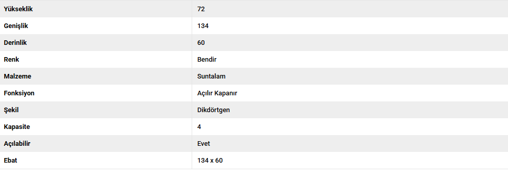 • Açılır ve katlanır ürünlerde açılmış ve kapanmış ölçüler görseller detaylıca yer alır.